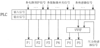 因為變頻器具有短路、過載等保護(hù)功能,所以當(dāng)前變頻器所驅(qū)動的水泵發(fā)生上述故障時變頻器將自動切斷一次供電回路,進(jìn)入保護(hù)狀態(tài)并輸出報警信號。PLC對這些報警信號進(jìn)行檢測,而后進(jìn)行備用水泵的投入。具體過程為PLC檢測到報警信號后首先分?jǐn)喈?dāng)前水泵的接觸器,后對變頻器復(fù)位,然后接通備用水泵的接觸器,啟動變頻器運行備用水泵。同時輸出該泵故障報警信號。