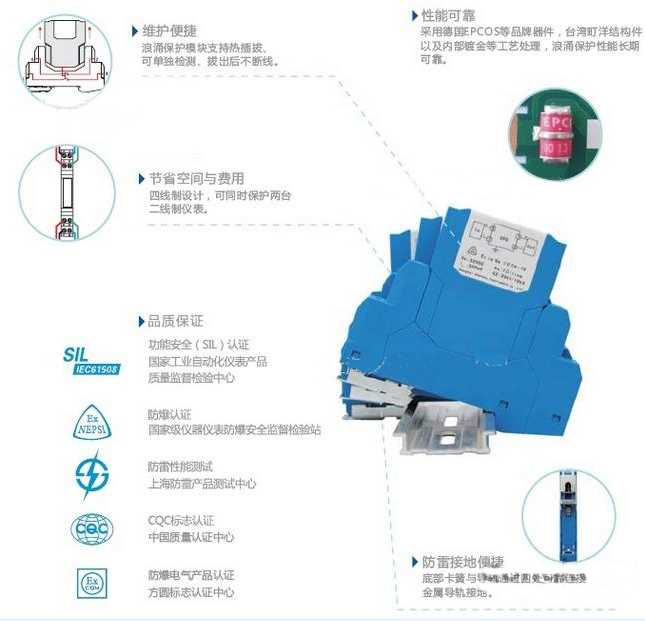 辰竹是國內唯一家集SIL、CQC、防雷、防爆認證齊全的企業,辰竹信號電涌保護器產品擁有12.5mm和7.6mm兩種薄度,本安型和通用型兩類選擇。
